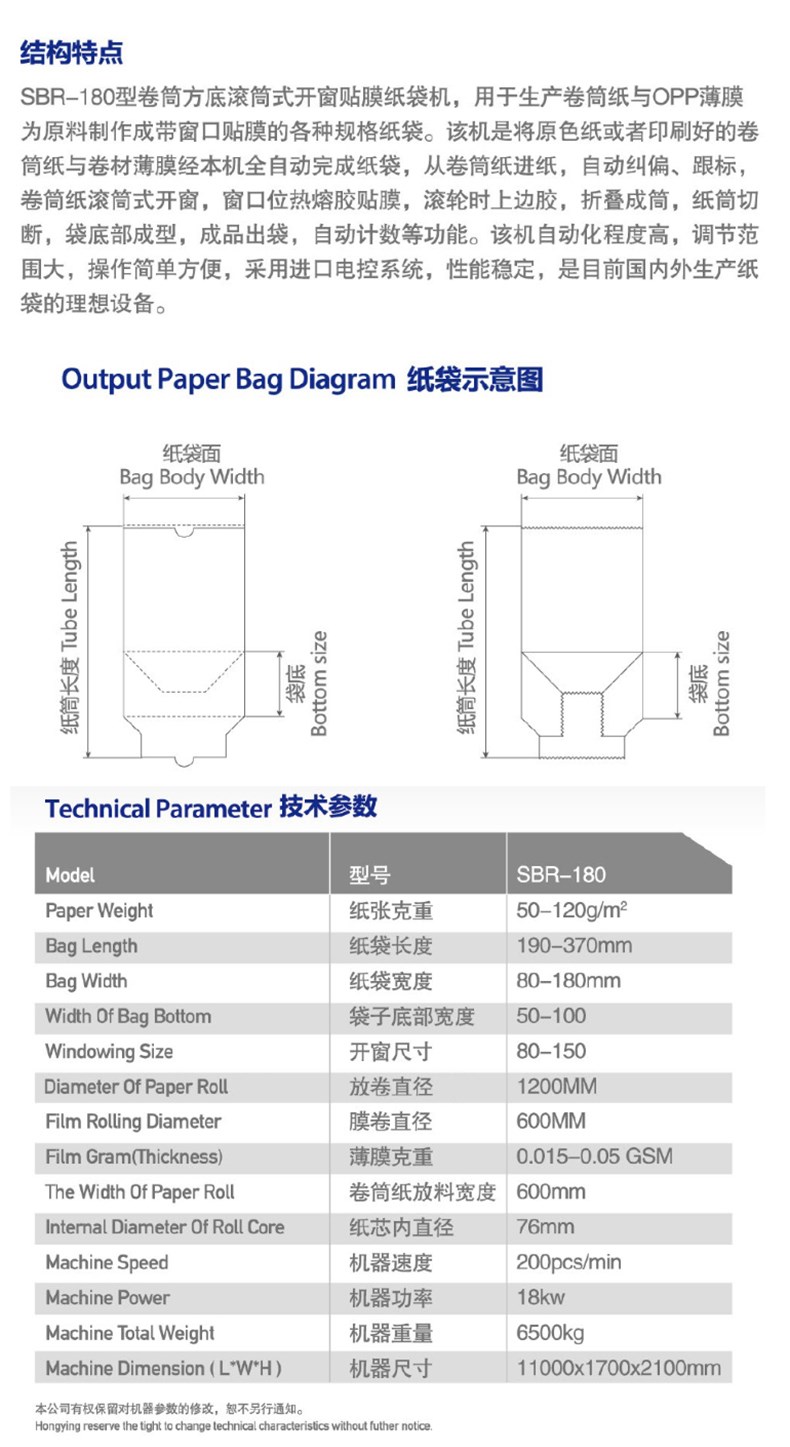可調(diào)式卷筒方底紙袋機(jī),是將原色或印刷好的卷筒紙由本機(jī)一次完成上邊膠、原料成筒、切斷、底部壓痕、底部涂膠、袋底成形、出袋。特別適合 40 克 -50 克方底紙袋生產(chǎn)。是生產(chǎn)食品袋、手提袋的理想設(shè)備。整機(jī)由高速運(yùn)動中央處理器(CPU)控制,觸摸屏顯示,伺服電機(jī)控制制袋長度,可生產(chǎn)多種規(guī)格的紙袋。基本型可以加插伺服開窗單元和貼片單元,兩層單元,柔印單元,生產(chǎn)開窗方底紙袋,兩層紙袋,連線印刷等紙袋,為客戶創(chuàng)造更大價值。